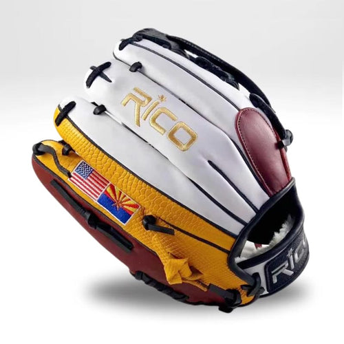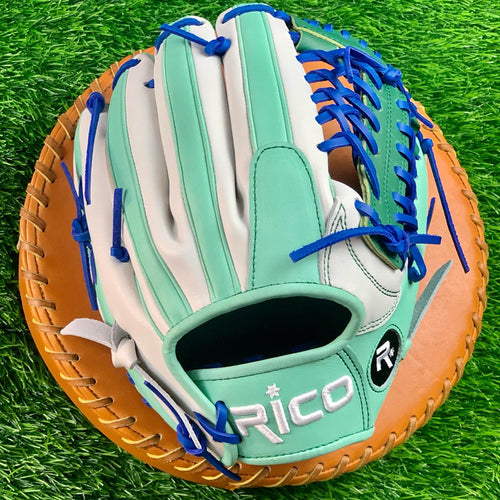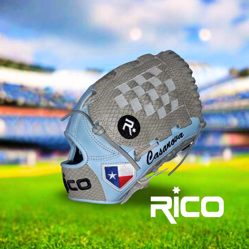 Rico Gloves makes three series of amazing custom gloves: Ultra Series recommended for Pro or College players, Star Series ideal for all players including Pro and College, Prime Series especially good for youth for softer feel and shorter break in time.